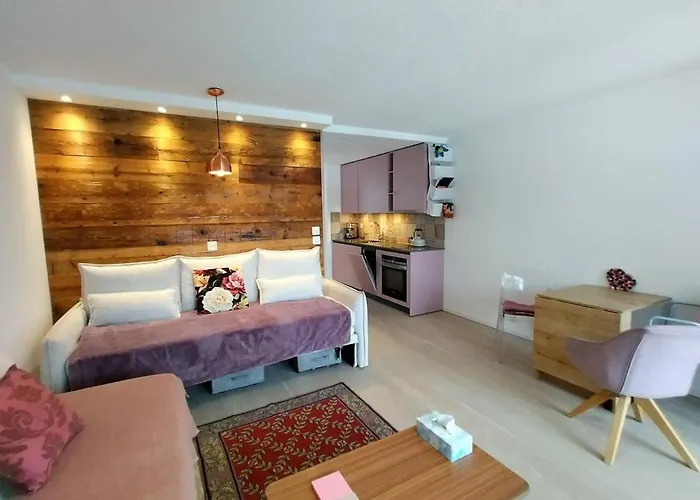 Walliser Alpentherme & Spa Leukerbad lässt sich von dem 1-Zimmer-Apartment aus in etwa 5 Minuten zu Fuß erreichen. Kirche Maria Hilfe der Christen befindet sich ungefähr 5 Gehminuten entfernt.